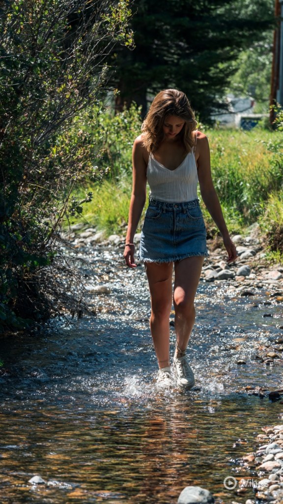 Ela me chamou para ir conhecer o riacho, mas antes de irmos, trocou o short por uma saia.