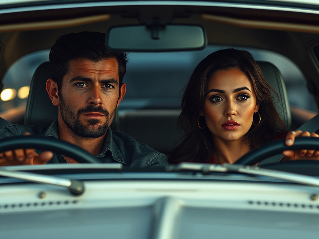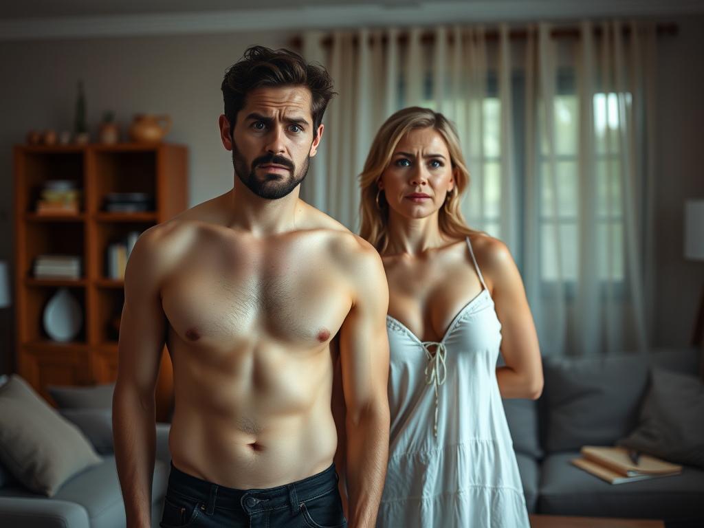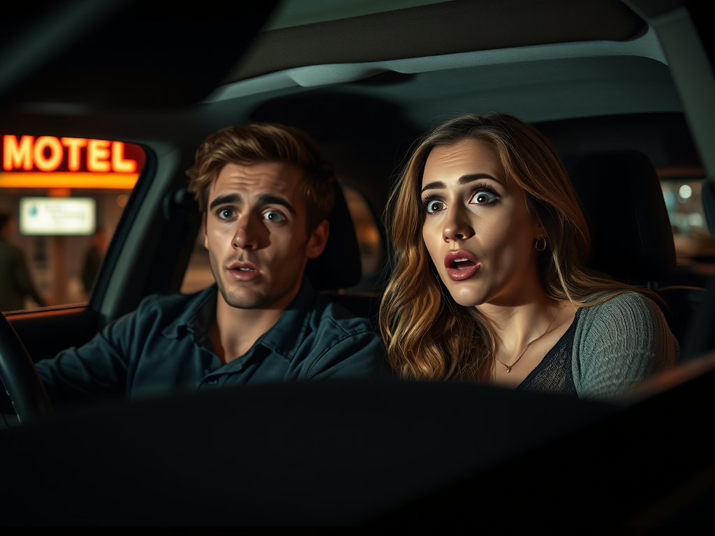 Esta foto (por IA)mostra como o meu marido nos fez carregar as minhas coisas no carro do jeito que estávamos na cama, nem a calcinha me deixou vestir.